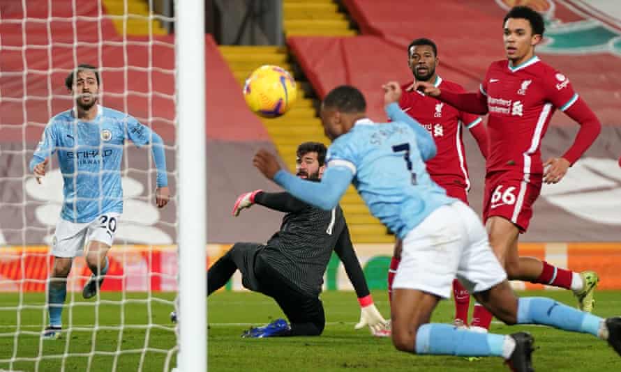 Manchester City Hammer Sorry Liverpool At Anfield After Alisson Errors Premier League The Guardian